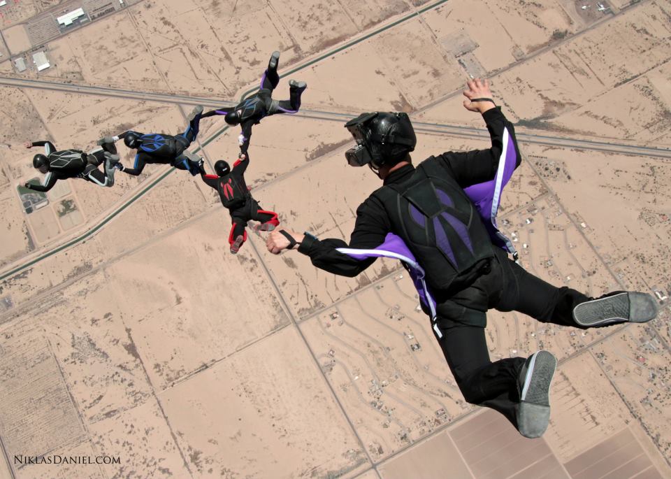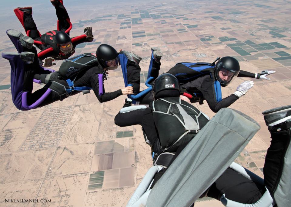 “Skydiving team Dallas Storm traveled to Eloy Arizona to train at Skydive Arizona. The team made a dozen jumps with coaching from Thomas Hughes (of Arizona Airspeed), and also completed 2.5 hours of wind tunnel training. Outside/Outside footage by Niklas Daniel”