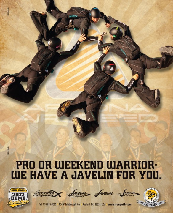 Here is the new Sun Path Ad comprised from an image taken by Bill Schmitz and myself. The podium shot was taken at the 2011 USPA Nationals at Skydive Arizona.