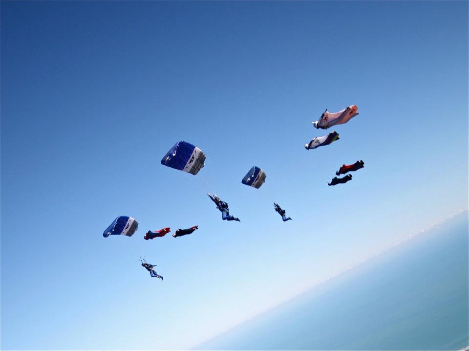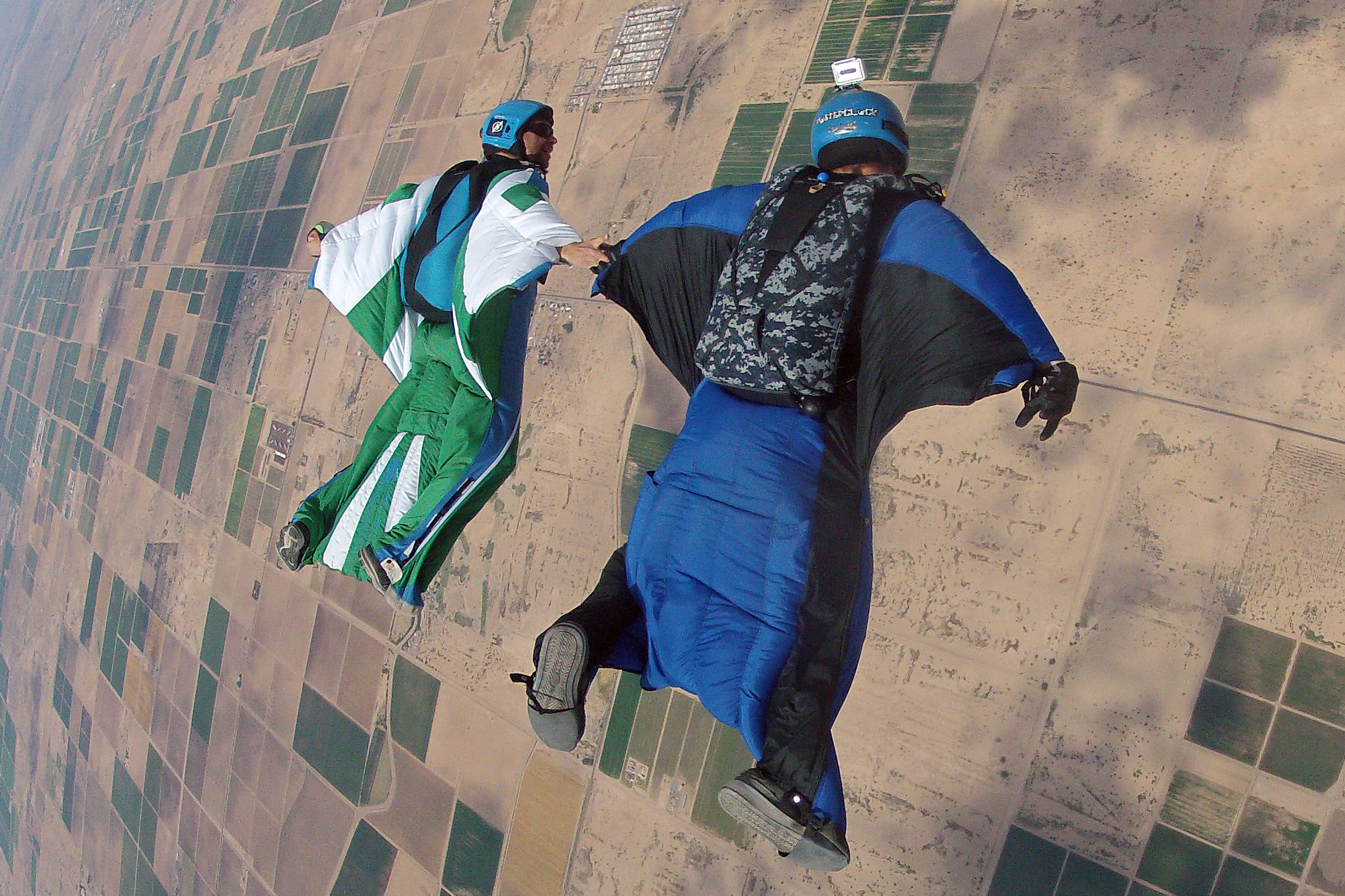 -First person to successfully perform a linked mixed formation flight while BASE jumping