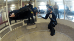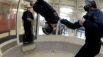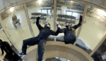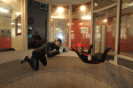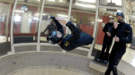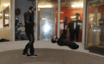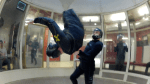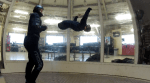 In part due to the fact that Pun, Nik, and Brianne are certifiable wizards and in part because Todd is one of the most coordinated and driven people I know, after a couple hours in the tunnel Todd was not only able to fly stable and practice reaching for handles, but was doing barrel rolls, front flips, and verticals!