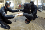 “Well, first of all, Pun did a grat job of setting the foundation of Todd’s training during their time at Paraclete XP! We got Todd right at the beginning of the steep part of his learning curve. Our goal during this training was to fully prepare him for AFF. We approached it by putting ourselves in the shoes of his AFF instructors and asking what would be our biggest fear? Student going unstable and out of control to the point where the AFF instructors are not able to get to him is of coarse the biggest fear. This is why we focused on making sure that Todd would be able to recover from any instability and any body position. In addition to barrel rolls and front flips, we incorporated back and head up flying into his training. This way he would be comfortable with different sight pictures and confident he can recover back to belly unassisted. Surprisingly, the loss of his left hand presented a bigger issue than the loss of his legs due to lack of feedback on one of his major control surfaces. Also, one of the early problems Todd had to solve was unassisted entry and exit from the tunnel. He came up with a technique of backing into and out of the tunnel that seems to work great for him.