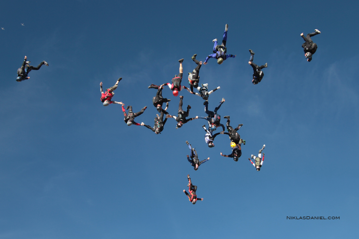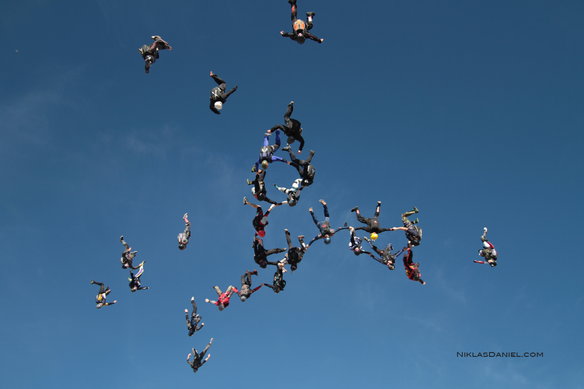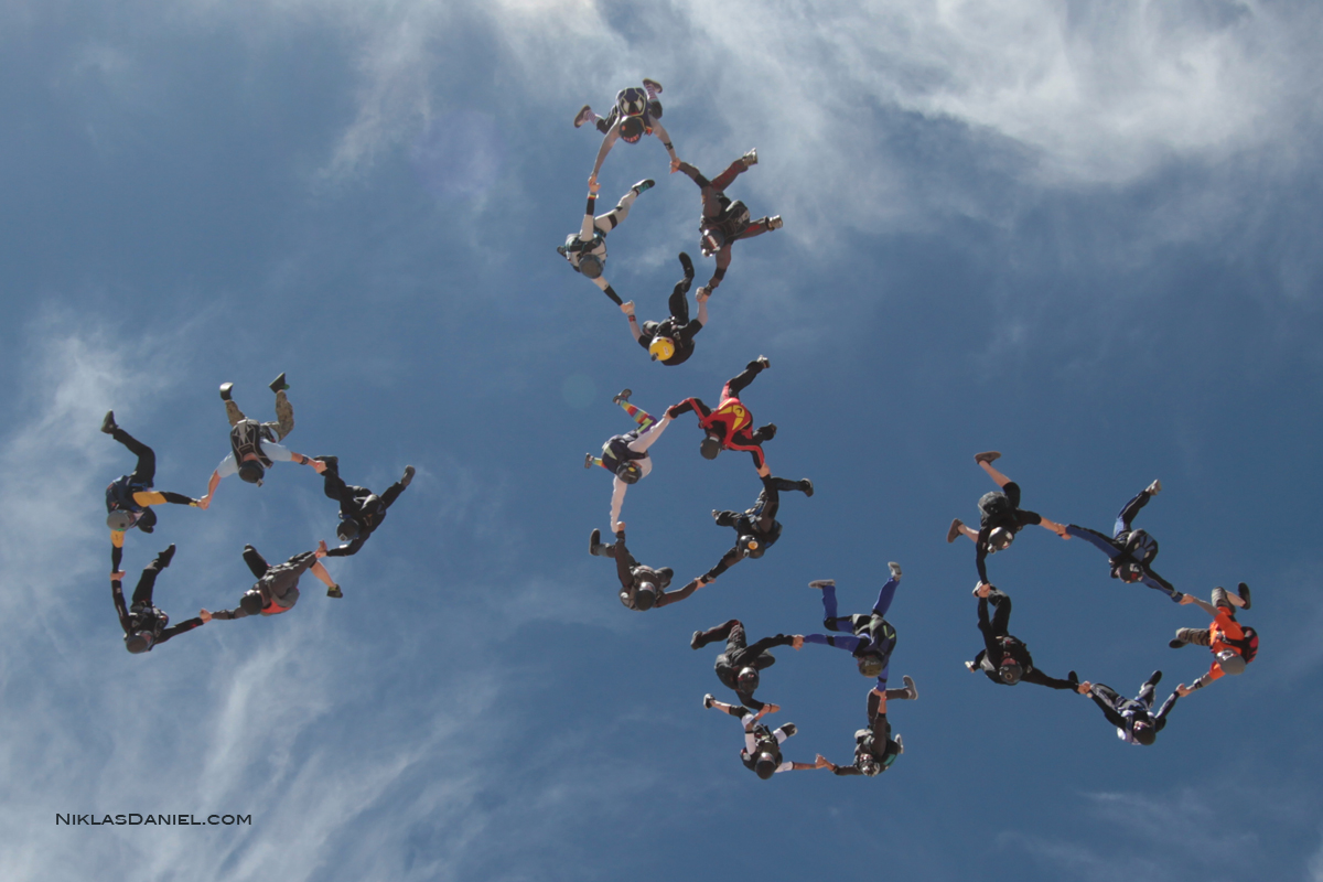 Brianne of AXIS Flight School had the amazing opportunity of attending both the Vertical and Airspeed Challenge! To the left you will see the plan for the most difficult formation of the belly event. The photo below shows the completed jump and was taken by Willy Boeykens.