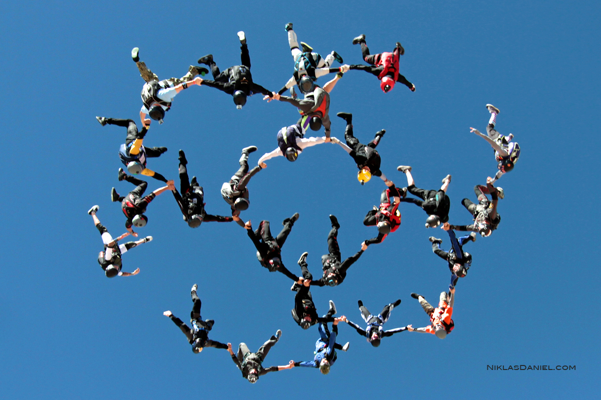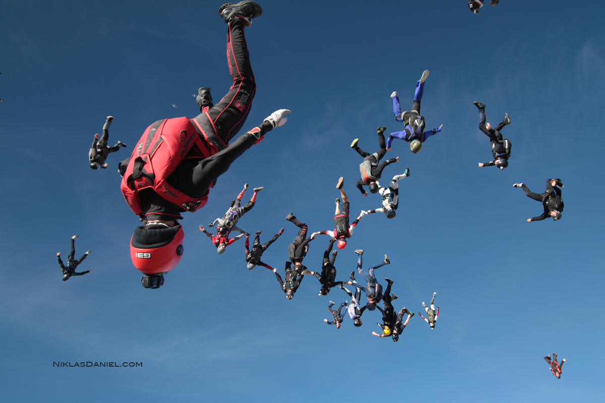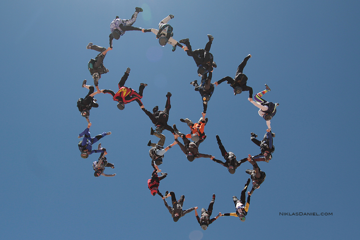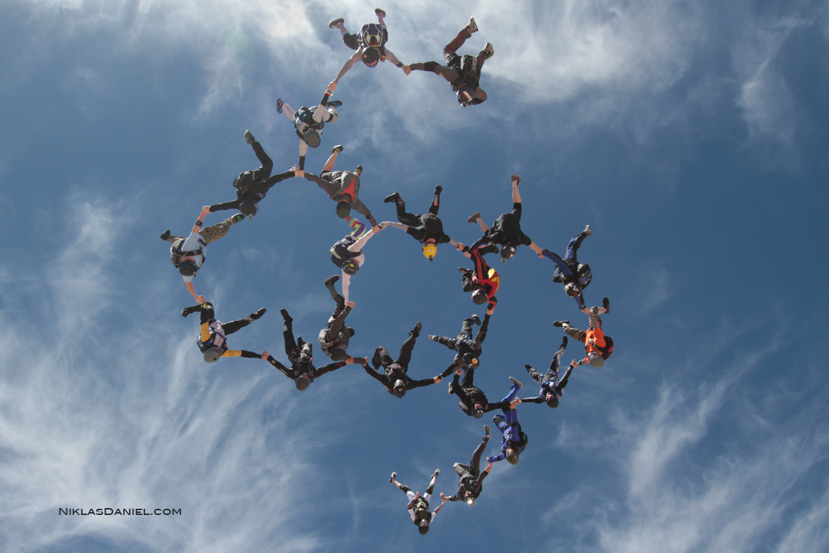 Brianne of AXIS Flight School had the amazing opportunity of attending both the Vertical and Airspeed Challenge! To the left you will see the plan for the most difficult formation of the belly event. The photo below shows the completed jump and was taken by Willy Boeykens.