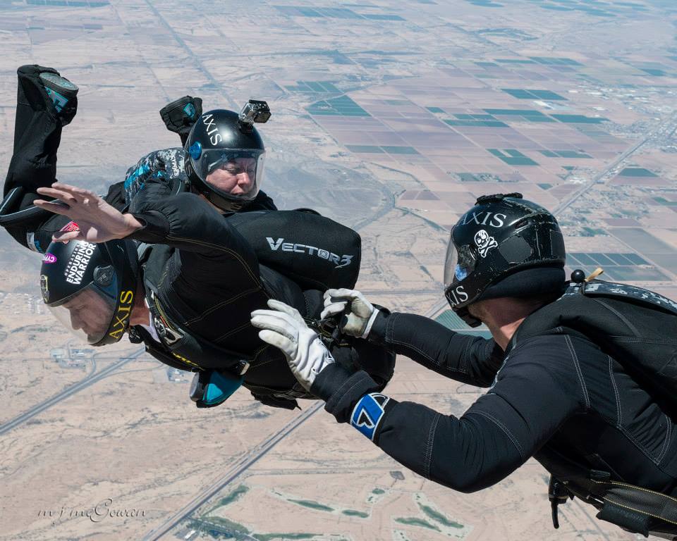 In June 2013, a non-profit organization called Operation Enduring Warrior (OEW) teamed up with AXIS Flight School and Skydive Arizona in training another wounded warrior, Todd Love, to skydive on his own. Todd is a U.S. Marine Corps veteran and a triple amputee with similar lower extremity injuries as Joe. In addition, he lost part of his left arm below the elbow. Todd has been the driving force behind the OEW Skydive program. After earning his A-license last summer, Todd has continued to jump and now has 75 jumps under his belt.