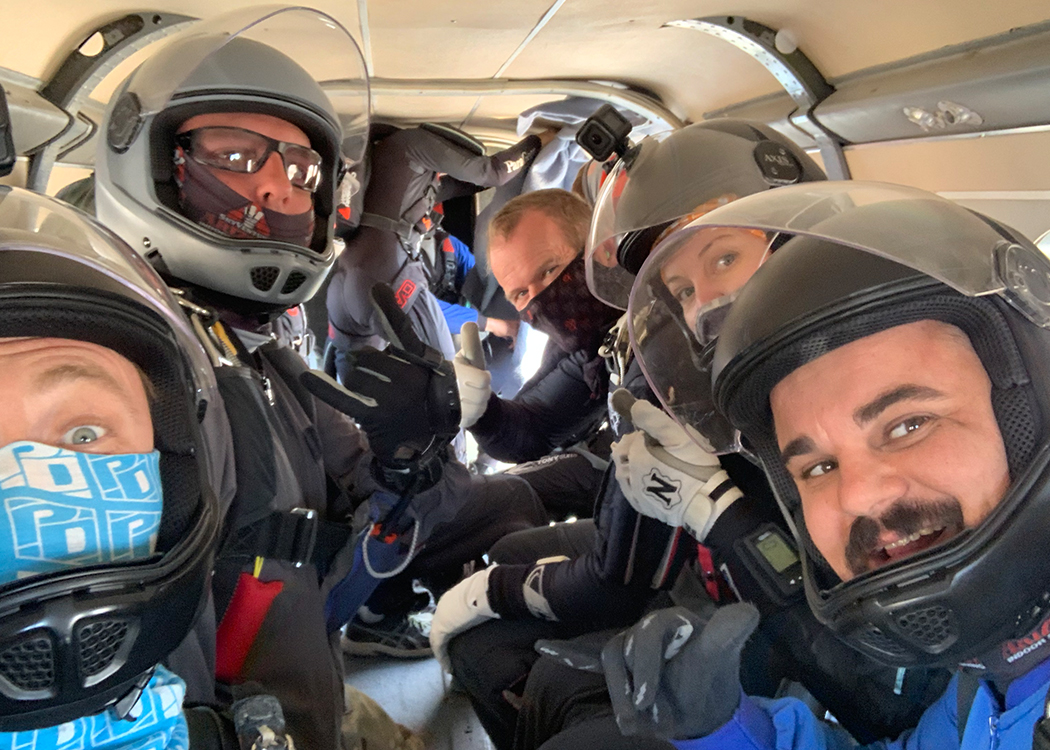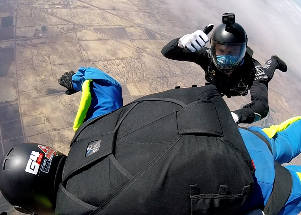 Back in February, OEW students Ryan Newell and Chris Wolff came to Skydive Arizona to learn how to fly their bodies during an intensive wind tunnel training camp with AXIS Flight School. Eight months later, they are back to start their jump training in pursuit of reaching the USPA A-License and beyond. The long break had several culprits, the largest one being the covid 19 epidemic. However, the months between their last visit also gave the team (UPT, OEW, AXIS) ample time to sort out equipment considerations that have to be addressed with every new OEW student. Each person has unique physical limitations that must be compensated for with custom equipment and training.
