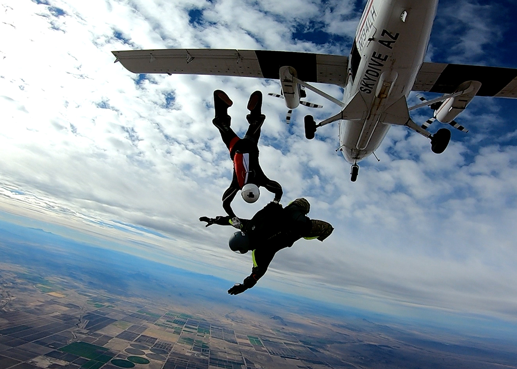 On October 21st, Ryan and Chris flew for 90 minutes in the tunnel, courtesy of Skyventure AZ. After getting reacquainted with the wind, Brianne started their first jump course (FJC). Over the next two days, both Ryan and Chris took to the skies learning via training-tandem progression with Adventures in Skydiving instructors Rich and Aaron. As the boys become more aware and comfortable with the demands of the sport, Brianne and Nik conducted more ground training before their first jumps on the 24th. Joost Luysterburg, a local instructor, was kind enough to donate some of his time to help Ryan and Chris during preparations and jumping.