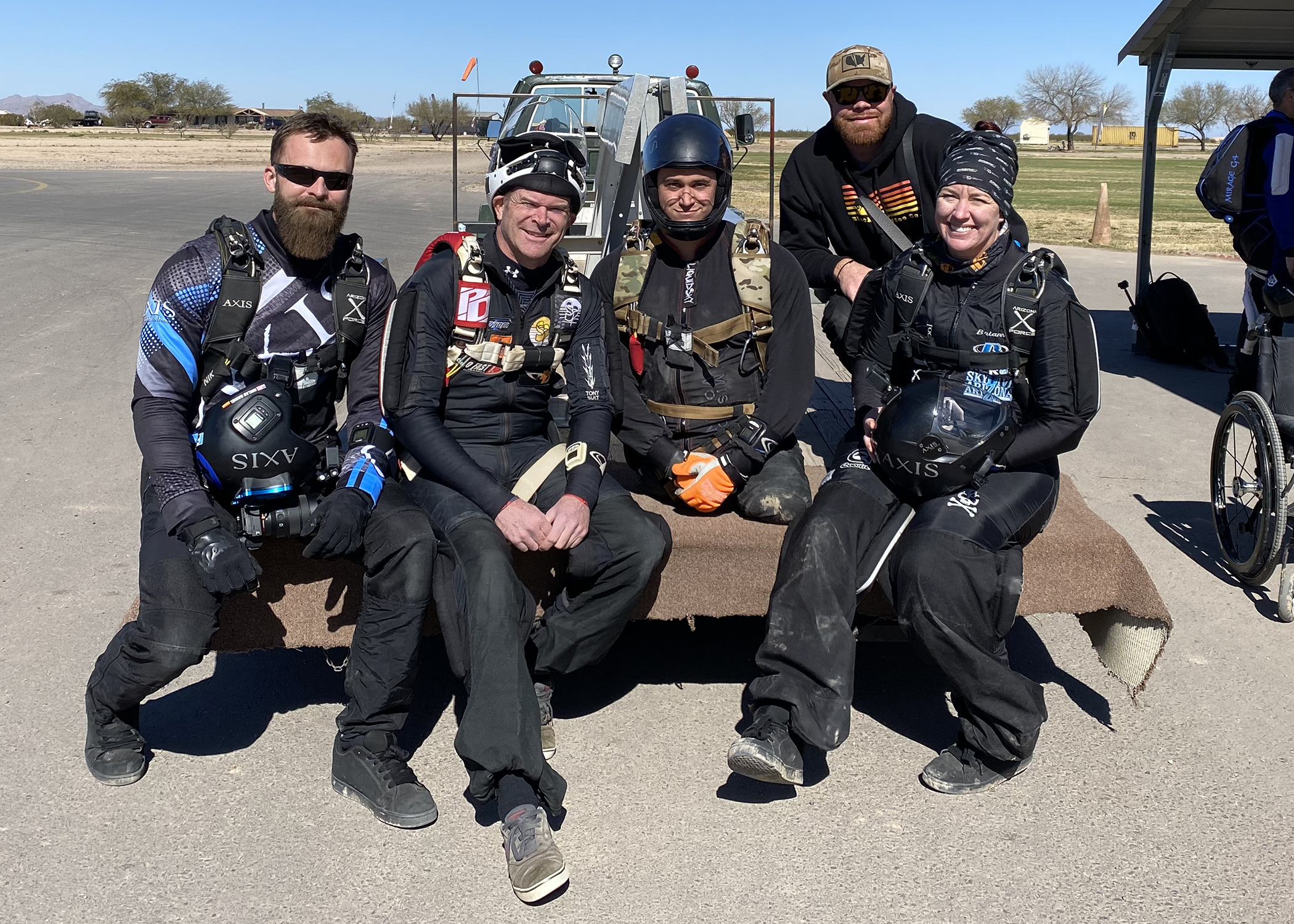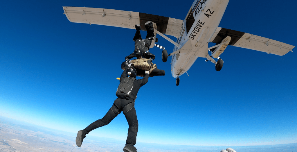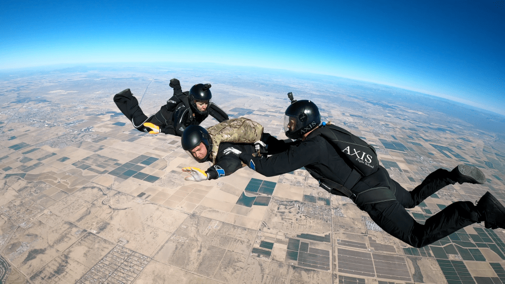 Back in September 2021, Operation Enduring Warrior (OEW Skydive) sent Jonathon to AXIS Flight School at Skydive Arizona to get them ready for their custom Accelerated Freefall (AFF) program. Over the course of three days, Jonathon trained with Brianne Thompson, Niklas Daniel, and Joost Luijsterburg, getting him through his First Jump Course (FJC), flying 15 minutes in the Skyventure Arizona wind tunnel, and completing two succesful skydives.