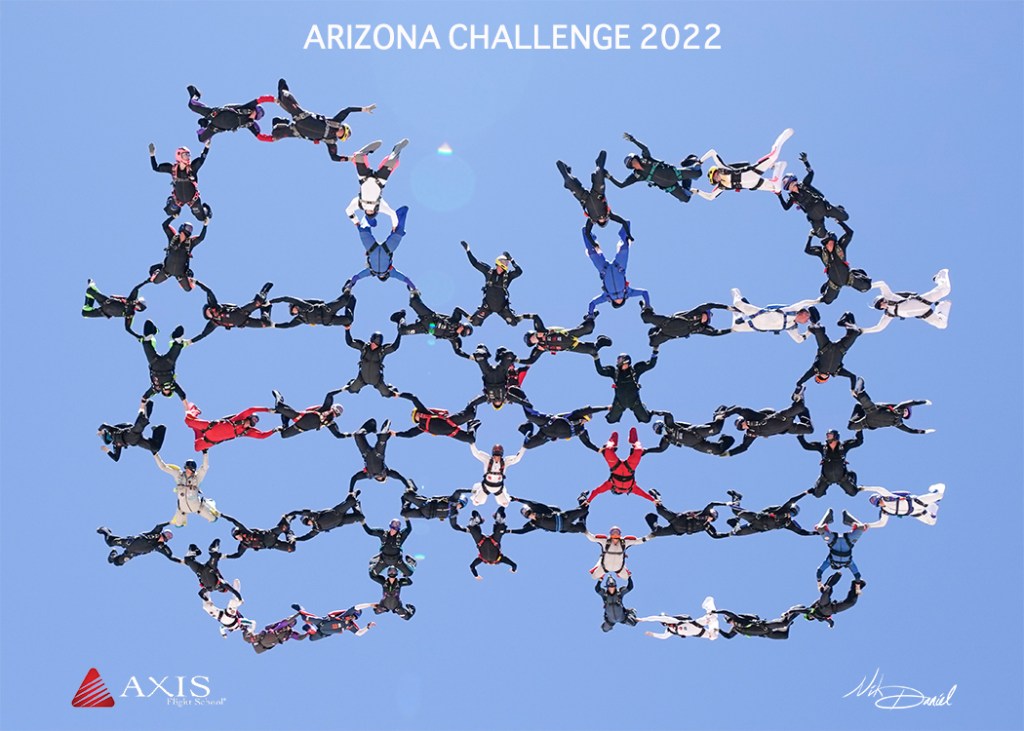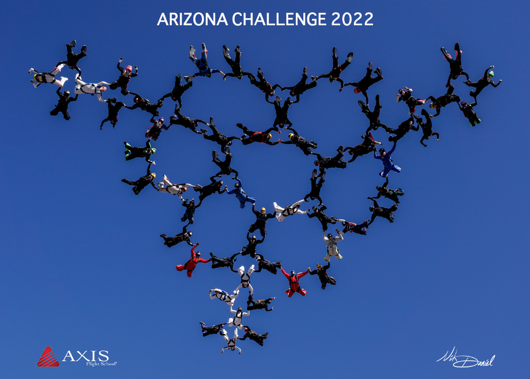 AXIS Flight School would like to thank Arizona Airspeed for including us in their annual invitational event – The Arizona Airspeed Challenge. Over the course of the memorial day weekend, members of the USA National 4-way Formation Skydiving Team organized some tricky 60-ways over Skydive Arizona. Jumping from an altitude of 16,000 feet, there were multiple successful completions. The last formation was built and held for 12 seconds!