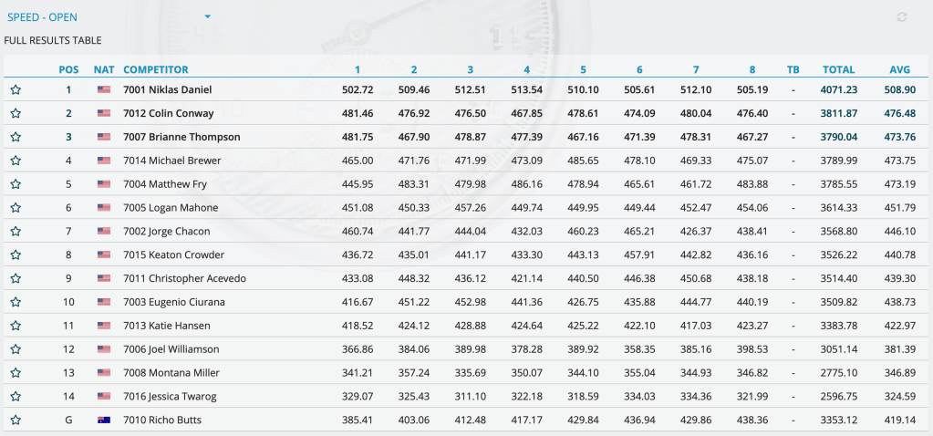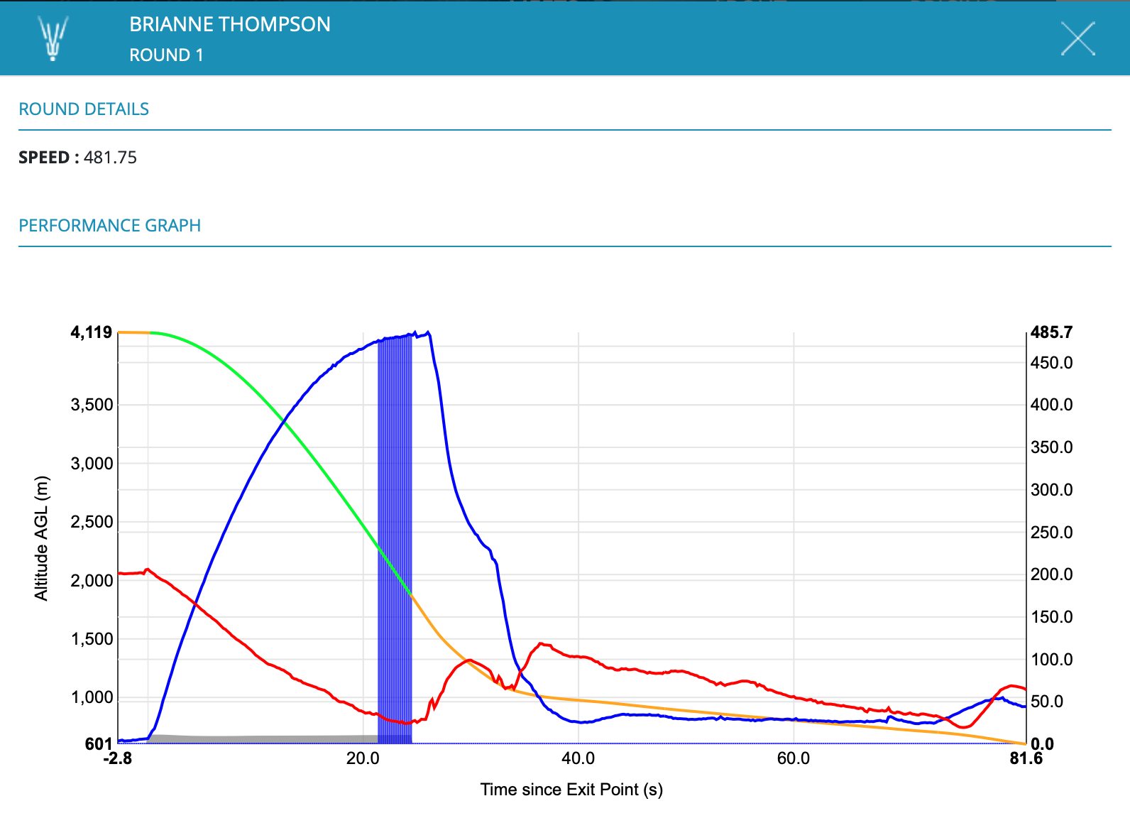 This comeptition saw one of the tighest finishes after 8 rounds. Brianne Thompson took bronze ahead of Mike Brewer by .05kmh. This makes Brainne the first female to reach the Open Podium at a USPA Nationals in Speed Skydiving.