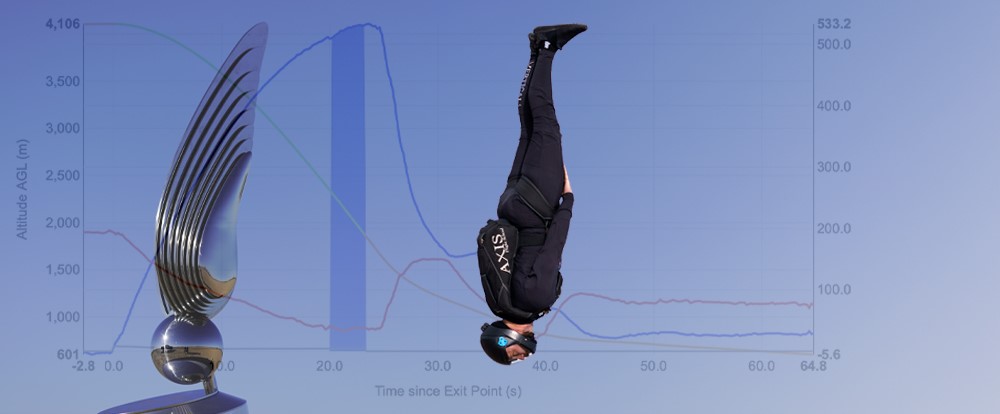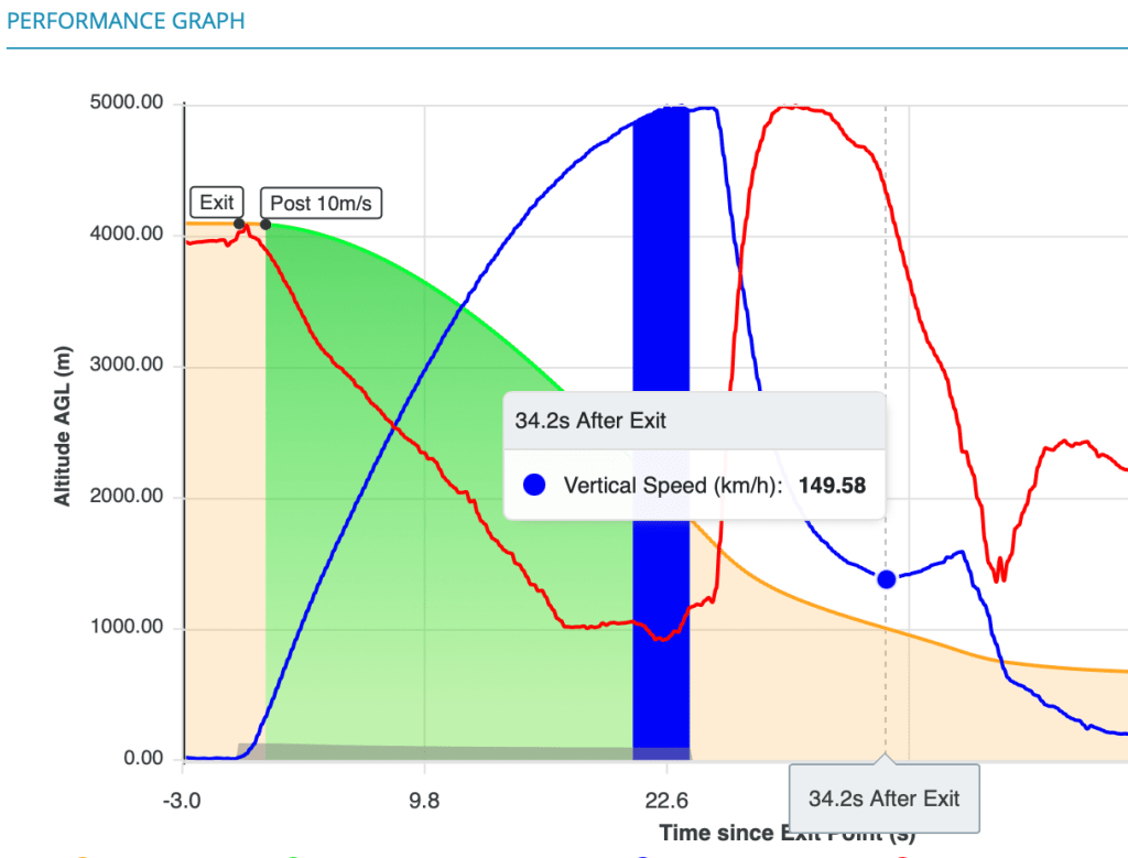 During the 2025 USPA National Speed Skydiving Championships, AXIS Flight School’s Niklas Daniel reached an incredible top speed of 544.25 km/h — 338.18 mph. As Nik transitions out of his dive and prepares for parachute deployment, his vertical descent frequently slows to 150kmh (93mph) or less. That is significantly slower than the average belly to earth skydiver who fall at around 120mph – keep in mind Nik does this in a skin tight suit which offers little air resistance. That’s a fall rate range of nearly 395 km/h (245 mph) within a single jump.