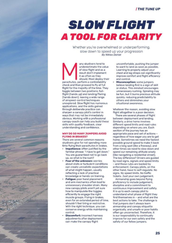 Our friends in Ol’ Blighty invited us to share our work on slow flight (previously published by Parachutist on this side of the pond), and we were glad to oblige. We’re pretty pleased with how it came out!